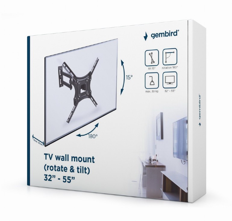 TV-Wall Mount for 32-55"- Gembird "WM-55RT-04", Rotate & Tilt, max.