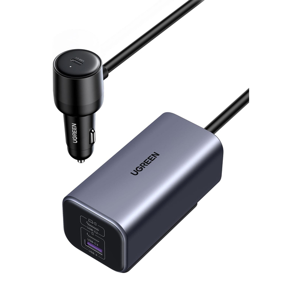 UGREEN Автомобильное зарядное устройство 2*Type-C + 1*USB-A Aluminium 150W, серый