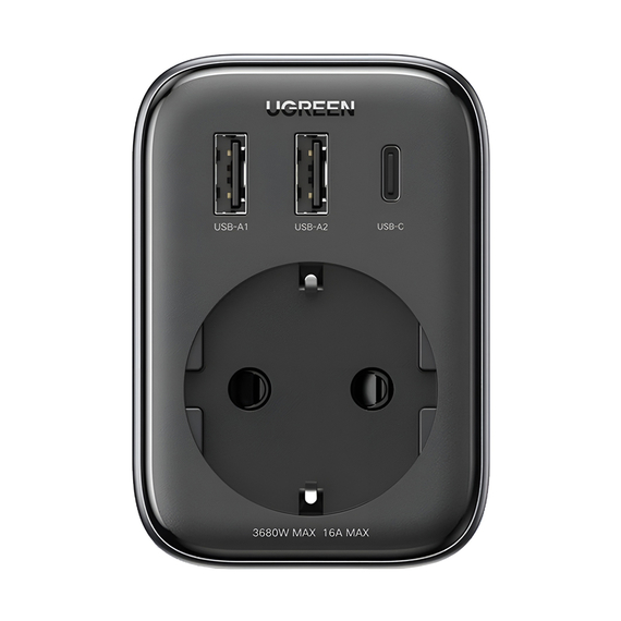UGREEN Удлинитель розетки 30 Вт 2*USB + Type-C + AC CD314, черный