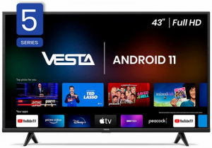 Телевизор Vesta LD43H5202Тип LED-телевизор Система AndroidTV 11Google Play MarketДиагональ 43" (110 см)Разрешение FHD 1920x1080Цифровой тюнер DVB-T/T2/CПриложения Skype, Facebook, Odnoklassniki, MEGOGO, YOUTUBEМагазин приложений Google Play MarketПроцессор 4-х ядерный Quad CoreВнутренняя память 8 GbDVB-T/T2/C(Ci+) ЕстьWi-FI +(b,g,n)Частота развертки 200 HzКоличество каналов 200Разрешение 1920x1080Яркость 450 кд/м2Динамическая контрастность 8 000 000:1Угол обзора Горизонталь: 178° /Вертикаль: 178°Время отклика матрицы, мс 2Система шумопонижения +Поддержка HDMI 480I; 480P; 576I; 576P; 720P; 720I; 1080I; 1080PПоддержка РС 640x480; 800x600; 1024x768; 1366х768; 1920x1080;"USB USB movie: AVI/MP4/TS/MKV/H.264/MPG/DAT/VOT, music: MP3/WMA/AAC/AC3, photo: JPG/JPEG/BMP/PNGDolby Digital AC3 ДаЯзык меню Русский, Английский, РумынскийТаймер сна ЕстьФиксированные установки ЕстьЭквалайзер ЕстьДинамики 20 ВтHDMI 3AV in Mini AVCoaxial ЕстьOptical ЕстьНаушники ЕстьPC Audio in ЕстьRJ-45 ЕстьUSB 2Потребляемая мощность 71 ВтРазмеры без подставки (ШxГxВ) см 970x75x570Размеры с подставкой (ШxГxВ) см 890x200x555VESA,мм 200x200