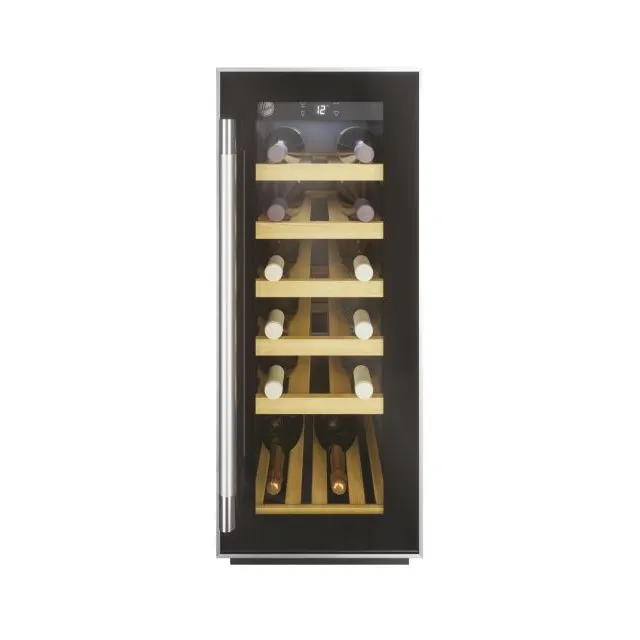 Vitrina de vinuri Hoover HWCB 30, Capacitate 19 sticle, O zona de racire, Rafturi lemn, Control electronic, Display, Iluminat interior LED, H 81.3 cm, Negru Vitrina incorporabila, cu o capacitate de stocare de 19 sticle (bordeaux – 0,75l) Iluminare LED; Control digital; O zona de temperatura; Umiditate 50 % - 80%; Culoare negru; Material vitrina plastic; Material rafturi lemn; 5 Rafturi; O usa reversibila; Materialul manerului Otel inoxidabil; Tip sticla Anti UV; Clasa climatica N; Clasa energetica B; Consumul de energie
