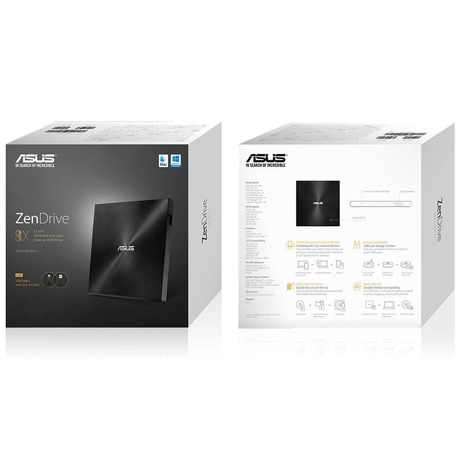 Внешние оптический привод DVD-RW ASUS ZenDrive U9M Ultraslim Black Ext