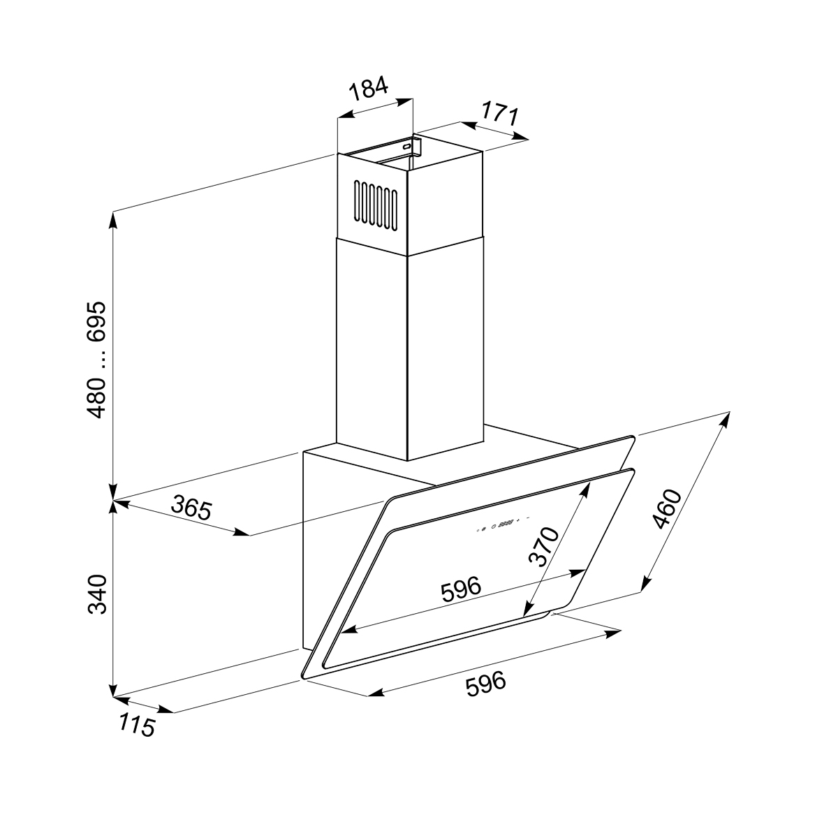 Вытяжка наклонная Tornado NOTOS 1200(60) LED BL Black (1200 м?/ч)