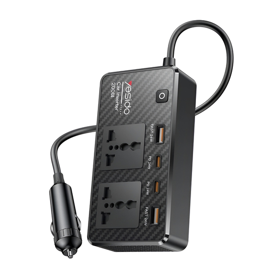 Yesido Автомобильный инвертор 12V 200W Max 1*AC220v 1*200W 2*USB-A 2*Type-C, черный